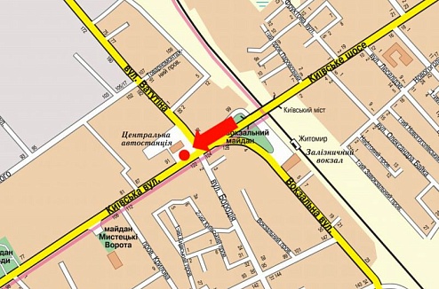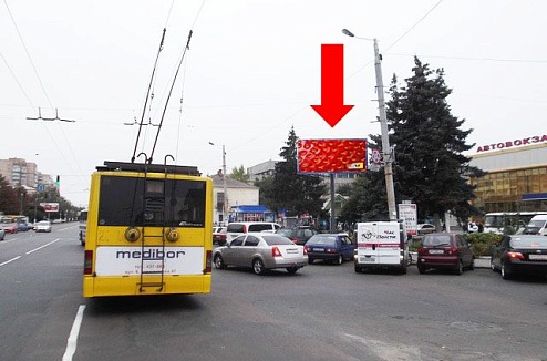 Заказать Билборд (наружную рекламу на билборде) в г. Житомир по адресу: Київська вул. - Незалежності пр., біля автовокзалу, на світлофорі, в центр можно через форму онлайн заявки или, позвонив менеджерам по телефонам: